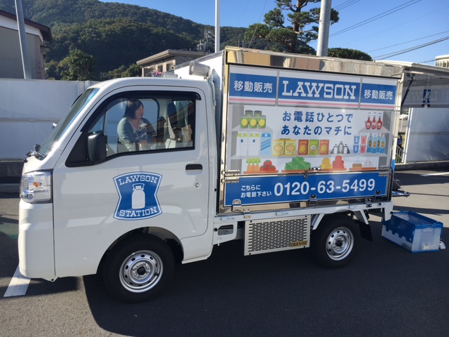 大照商事有限会社では、ローソン店舗から距離のある住宅付近、高齢者施設や企業、工場などにうかがい、食品や日用品などの移動販売を実施しています。その際には、自治体などと連携し、買い物中の高齢者の方々へ声かけをする「見守りサービス」も行い、地域貢献できる働きを目指しています。